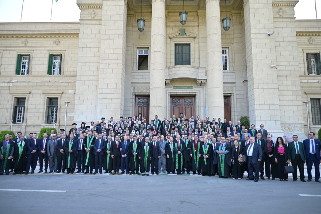 شهدت قاعة الاحتفالات الكبرى بجامعة القاهرة حفلا مهيبا، لحدث استثنائي غير مسبوق في تاربخ الدولة المصرية، حيث قام د.محمد سامى عبدالصادق رئيس الجامعة بتكريم وزير العدل، ورؤساء الهيئات القضائيةالحاليين وجميعهم من خريجي كلية حقوق القاهرة دفعة 1977، كما قام رئيس الجامعة بتكريم الرواد من كبار أساتذة الكلية الذين تقلدوا أرفع المناصب فى الدولة، وقدموا إسهامات وطنية جليلة، وتضمن الحفل تكريم أوائل الخريجين من كلية الحقوق دفعات 2022، 2023، 2024، والحاصلين على الدكتوراة والماجستير، وأوائل الدبلومات.
