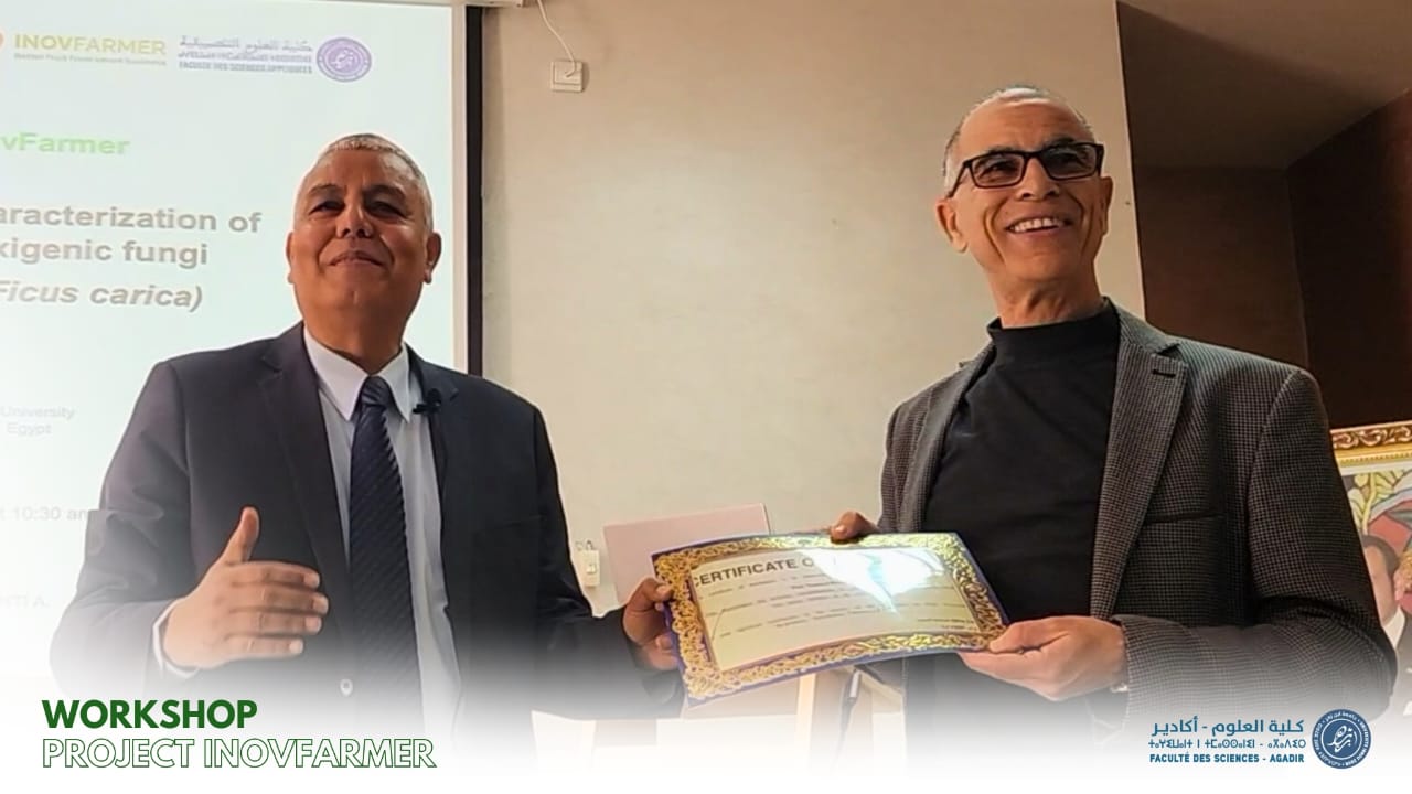هذا المشروع عنوانه تحسين سلال الامداد المتوسطية لتقوية القدرة التنافسيه لصغار المزارعين و ذلك من خلال تصنيع الفاكهه و تثمين منتوجات التصنيع الثانويه و يضم هذا المشروع بالاضافة الى مصر المملكة المغربيه و جمهورية الجزائر و البرتغال و فرنسا . اثناء زيارة الفريق البحثى المصرى قاد الاستاذ الدكتور يوسف غرباوى ورشة عمل عن تصنيف الفطريات الممرضة للنباتات و كذلك المنتجة للسموم مع نظرة خاصة للفطريات الملوثه للتين الجاف . حضر الورشة اكثر من عشرين من اعضاء هيئة التدريس بكليتى العلوم و العلوم التطبيقيه من اقسام مختلفه و كذلك اكثر من 100 طالب و طالبه من طلاب الدراسات العليا بقسم البيولوجى بذات الكليتين، وايضا بحضور الاستاذ الدكتور عبد الحميد مصدق نائب رئيس الجامعه لشئون الدكتوراه و الذى قدم للورشة و فى نهايتها توجه بالشكر للدكتور غرباوى على ما قدمه من معلومات غزيرة لاقت استحاسن حضور الورشه. و بعد انتهاء الورشة و الاجابة على الاسئلة المطروحه من الحضور توجه الدكتور غرباوى بالشكر لجامعة بن زهر على حسن الاستقبال و التنظيم للفعاليات . و قد قام السيد نائب رئيس جامعة ابن زهر بتكرم الدكتور الغرباوى.
