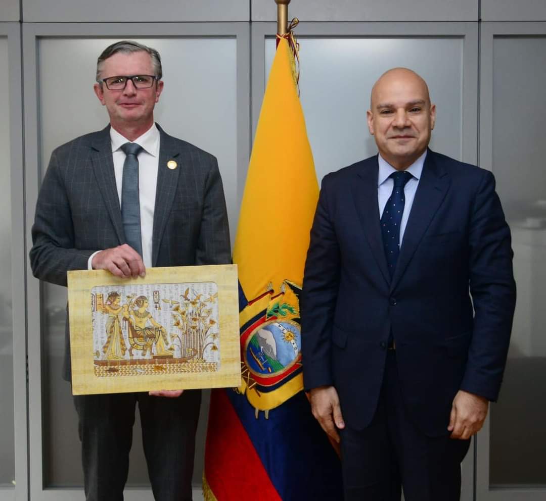 أكد السفير المصري حرص مصر على توطيد أواصر التعاون الإقتصادي مع الإكوادور والعمل على إجراء تواصل بنّاء بين الجانبين من أجل الإستفادة بالفرص الإستثمارية المتاحة وزيادة حجم التبادل التجاري في إطار مساعي تجاوز التحديات الإقتصادية العالمية الراهنة وأستعرض الفرص الإستثمارية المتعددة في مصر وخاصة بالمنطقة الإقتصادية لقناة السويس.