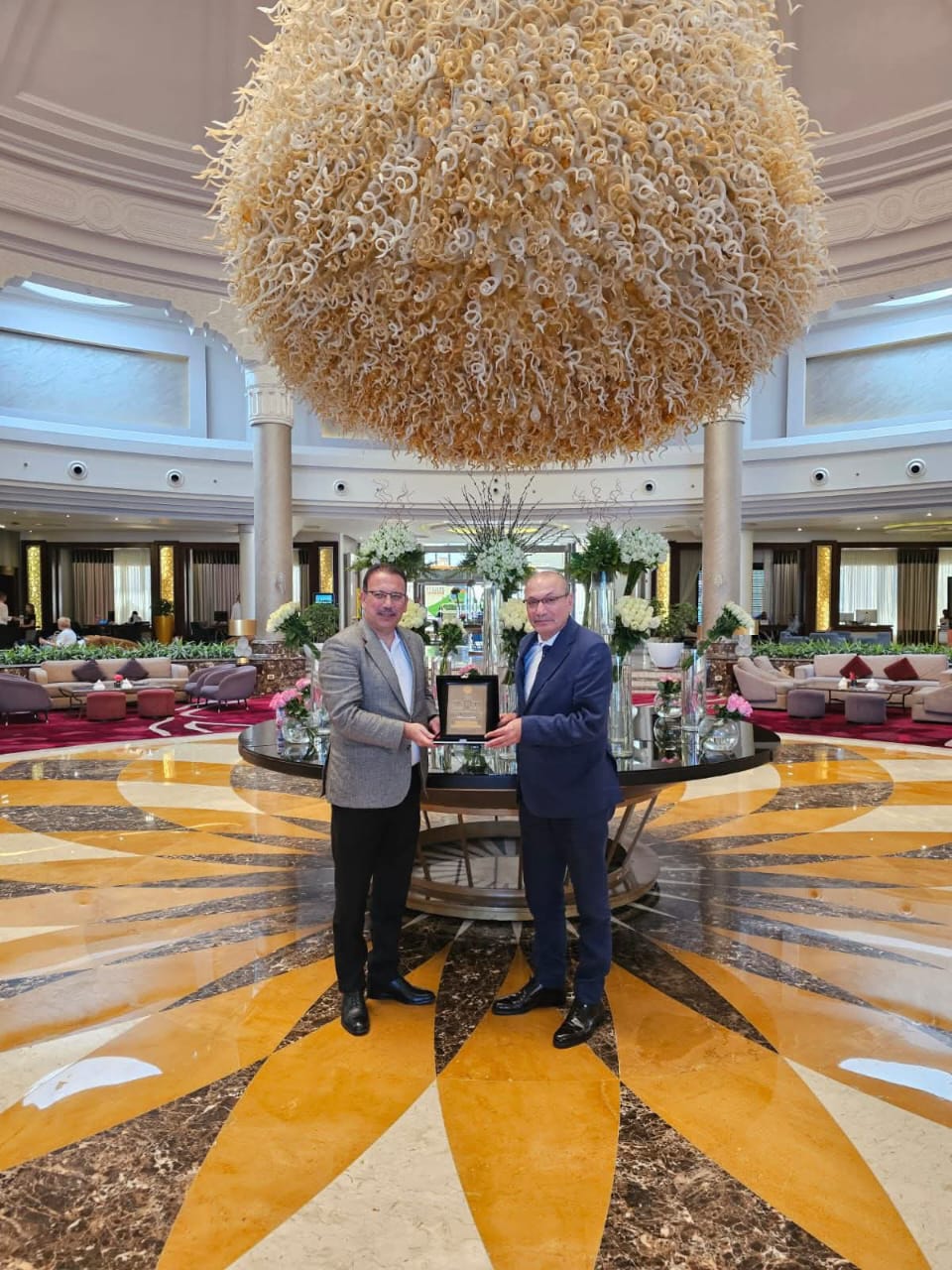وخلال اللقاء، أعرب السيد ينر عن خالص تمنياته للسفير شن بمزيد من التوفيق والنجاح في مسيرته الدبلوماسية، مقدّمًا له درعًا تذكاريًا بهذه المناسبة، تعبيرًا عن التقدير والإحترام، وسط أجواء احتفالية ودية جمعت عددًا من المشاركين في أعمال المؤتمر الدولي.