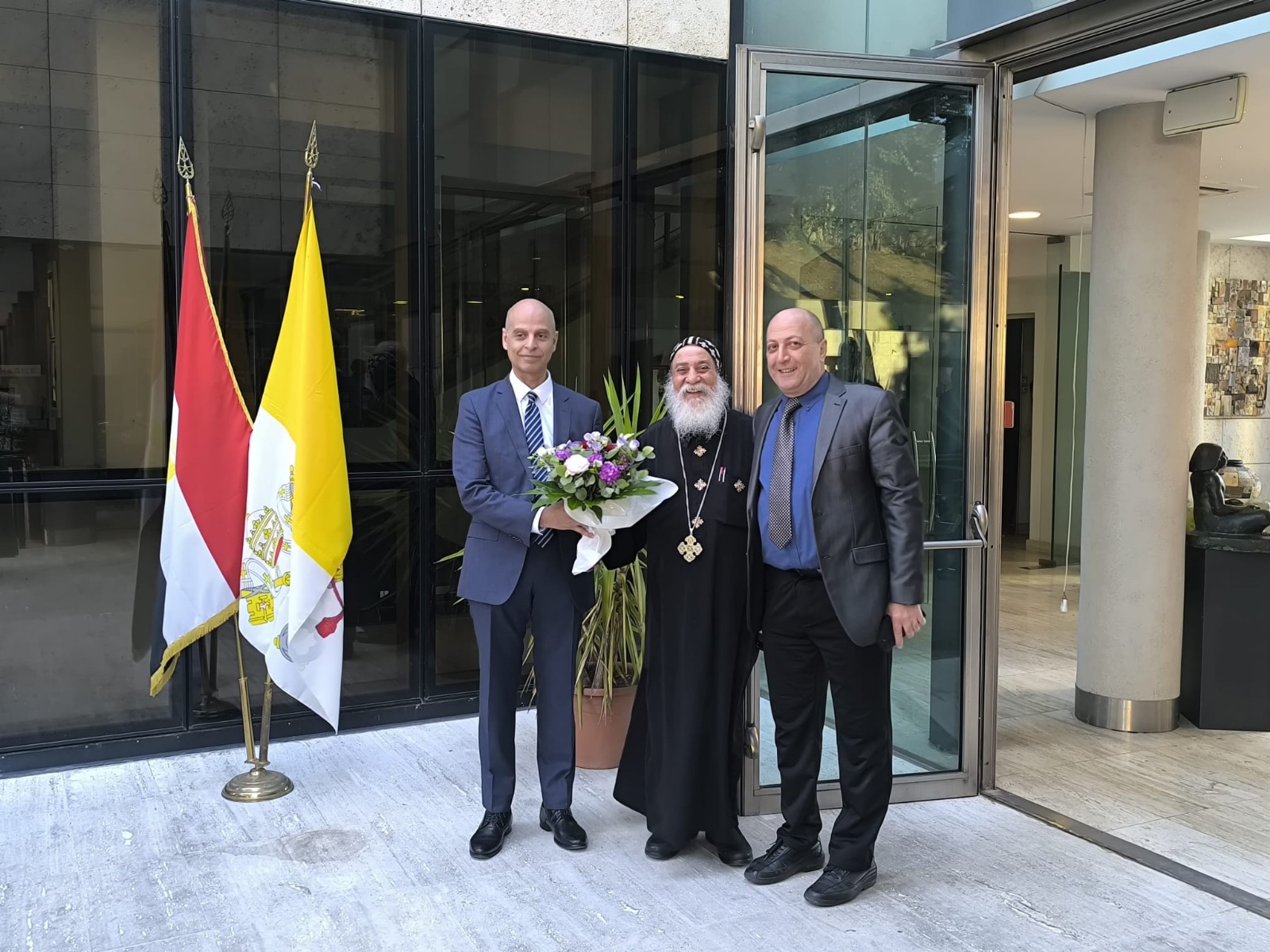 و كان فى إستقبال الضيوف بصحبة سفير مصر فى الفاتيكان السفير بسام راضي سفير مصر فى روما جميع أعضاء البعثة الدبلوماسية المصرية والمكاتب الفنية فى إيطاليا الممثل والفنان الكبير أحمد عبد العزيز الذى حرص على أن يكون فى مقدمة الحاضرين أثناء تواجده فى رحلة سياحية فى العاصمة روما ,أشاد بالجهود الكبيرة التى تقوم بها البعثة