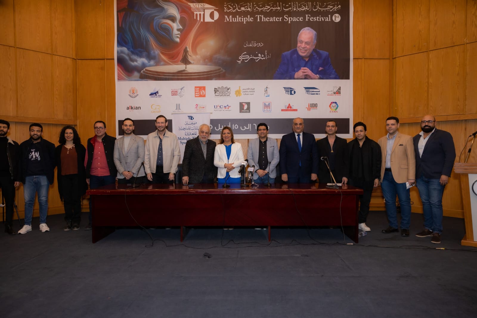 الجدير بالذكر أن الإعلامي محمد بدر رئيس اللجنة الإعلامية قد أدار المؤتمر الصحفي للمهرجان، والذي شرفه بالحضور: الدكتور أشرف زكي والمهداة لاسمه الدورة الأولى من المهرجان، علاوة على أعضاء اللجنة العليا وهم: الدكتورة غادة جبارة بصفتها رئيس اكاديمية الفنون ورئيس المهرجان، الدكتور أيمن الشيوي عميد المعهد العالي للفنون المسرحية بصفته، الدكتور محمود فؤاد صدقي مؤسس ومدير المهرجان، الفنان مايكل رفلة نائب مدير المهرجان، الدكتور ياسر علام رئيس اللجنة العلمية، محمد ابو المجد -أمين عام أكاديمية الفنون، عمرو مصطفي رئيس لجنة الشؤون الإدارية، الفنان عزوز عادل رئيس لجنة العلاقات العامة، المهندسة سماح نبيل – رئيس لجنة التجهيزات، الفنان محمد المنصوري – رئيس لجنة التنظيم، الفنانة منى سليمان – رئيس لجنة العروض والبرامج، وعبد الله محمد مقرر المهرجان