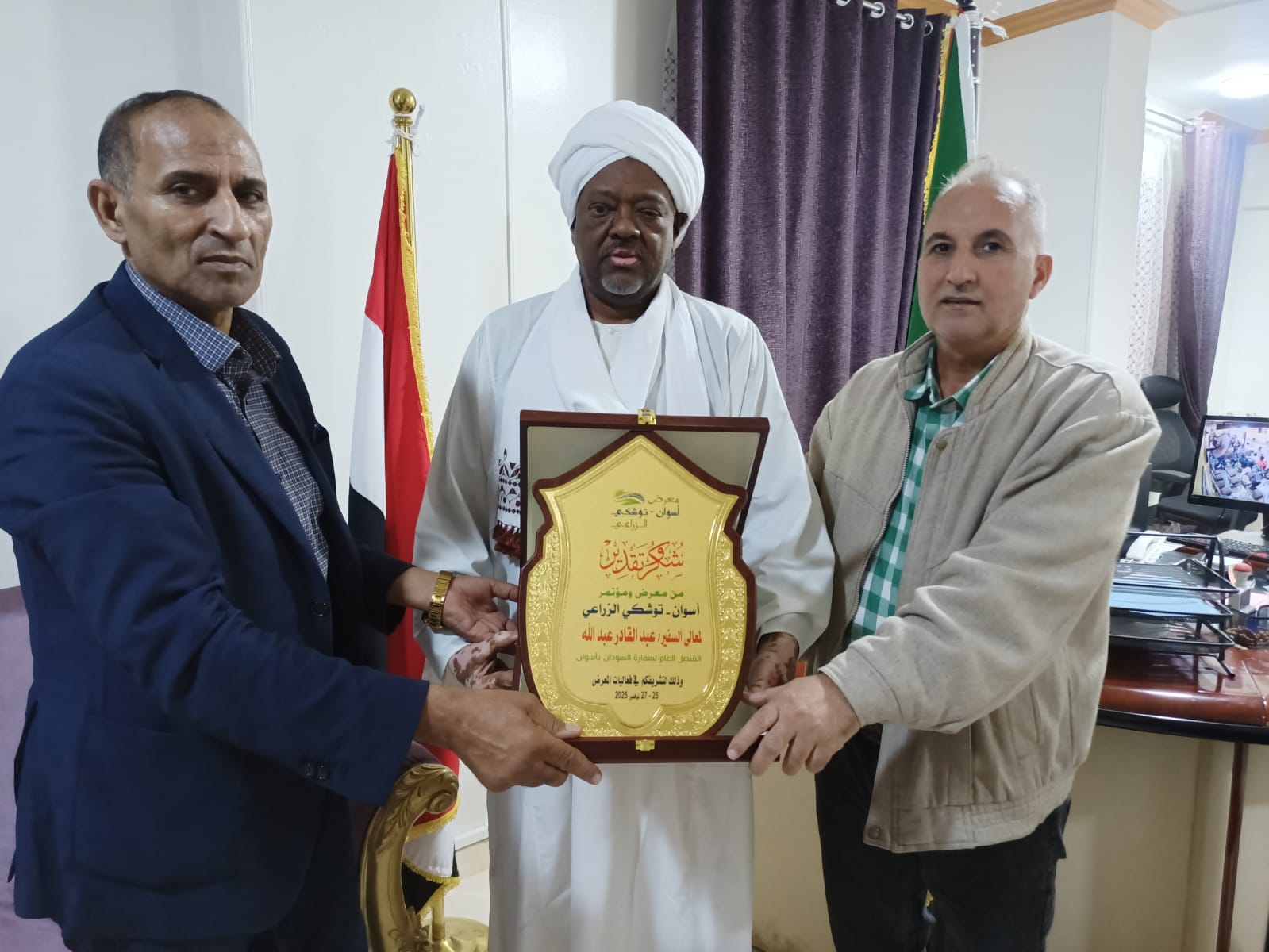 وعلي هامش اللقاء تم منح درع مؤتمر ومعرض أسوان توشكي الزراعي للقنصل العام لجمهورية السودان بمحافظات جنوب الصعيد باسوان تقديرا لجهوده المتميزة.