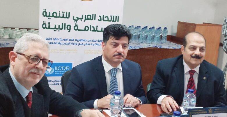 المهندس السعيد اللبان الأمين العام المساعد للاتحاد ، م.د محمد اليمانى رئيس المجلس العربي للطاقة المستدامة بالإتحاد العربي للتنمية المستدامة والبيئة، م.د فاروق الحكيم أمين عام جمعية المهندسين المصرية.