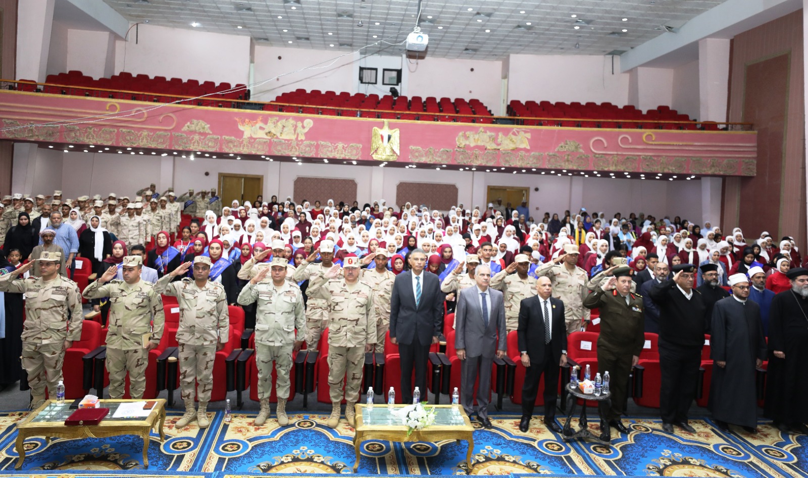 جامعة أسوان تشارك في احتفالية تكريم أسر الشهداء والمصابين بالمحافظة بحضور 200طالب بالتربية العسكرية