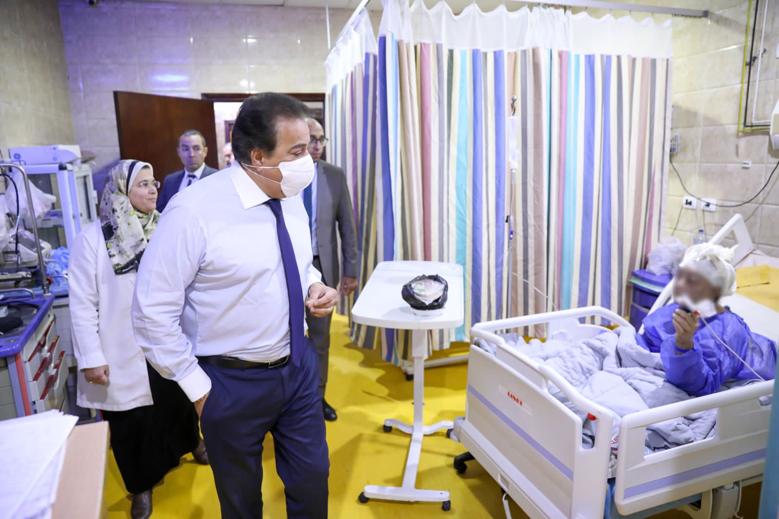 وأضاف «عبدالغفار» أن الوزير استمع من طبيب الرعاية المركزة إلى تقرير بالحالات المحجوزة بالقسم، وعددها 16 حالة واطمأن منه على حالتهم الصحية، موجهًا بتوفير كافة سبل الرعاية الطبية لهم، كما تفقد الوزير وحدة الغسيل الكلوي واطمأن من المرضى وعلى تلقيهم الخدمة الطبية دون أي معوقات.