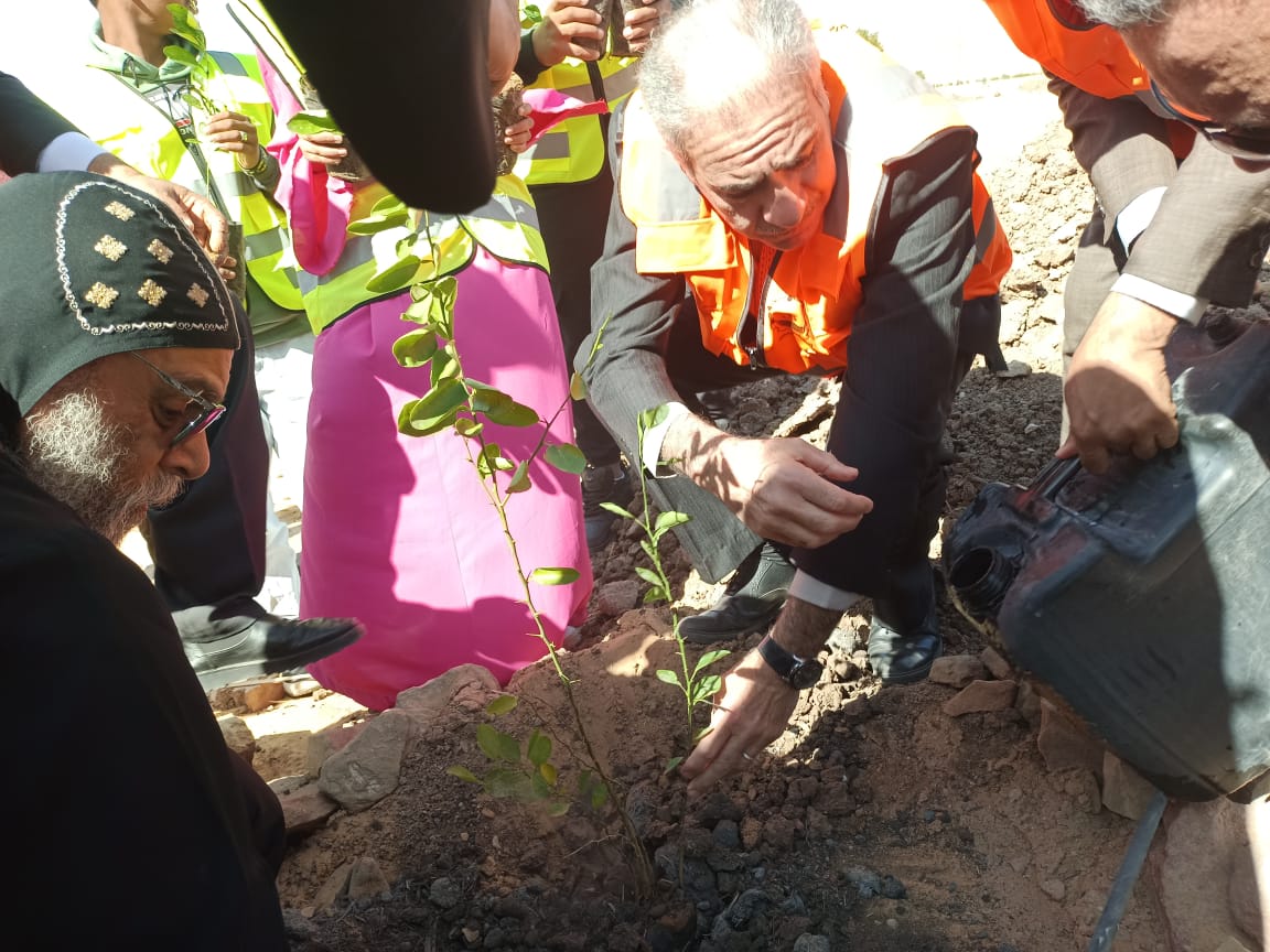 وقام رئيس جامعة أسوان و نيافة الأنبا بيشوي، والمهندس محمد قبطان، والدكتور محمد عبدالعزيز مهلل ،والدكتور أحمد غلاب بزراعة شجرة الليمون المثمرة بالدير تعبيرا عن قوة نسيج الوطن الواحد والعمل علي التماسك في ظل التحديات والمخاطر التي تواجه الوطن.