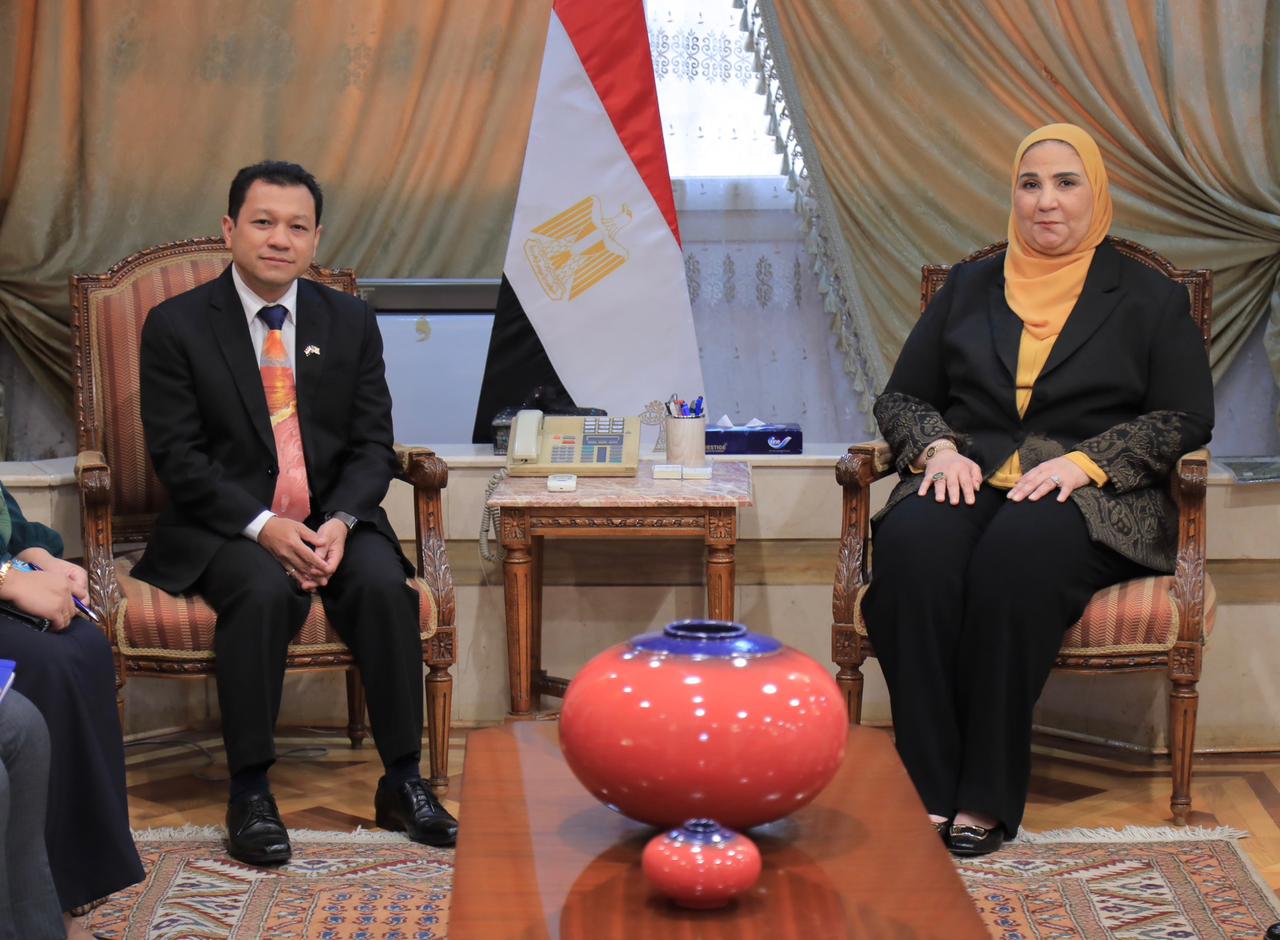 وزيرة التضامن الاجتماعي تستقبل سفير ماليزيا بالقاهرة لمناقشة إجراءات الإغاثة الإنسانية التي يتم تقدمها من دولة ماليزيا للأشقاء الفلسطينيين في قطاع غزة عبر الهلال الأحمر المصري