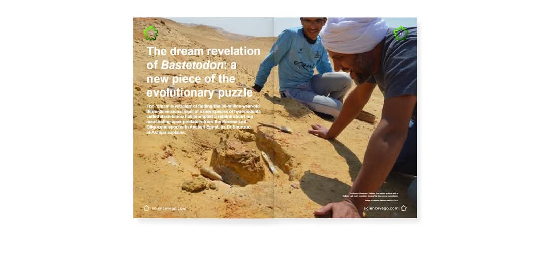 تصدَّر الإكتشاف العلمي الأخير لفريق مركز الحفريات الفقارية البحثي ــ المتعلق باكتشاف وتسمية جنس جديد من الثدييات المفترسة التي عاشت في مصر قبل 30 مليون عام، وإعادة تسمية جنس آخر مُكتشَف منذ 120 عامًا ــ غلافَ عدد أبريل من مجلة ScienceVega البريطانية المتخصصة في تبسيط العلوم لطلاب المدارس والجامعات.
