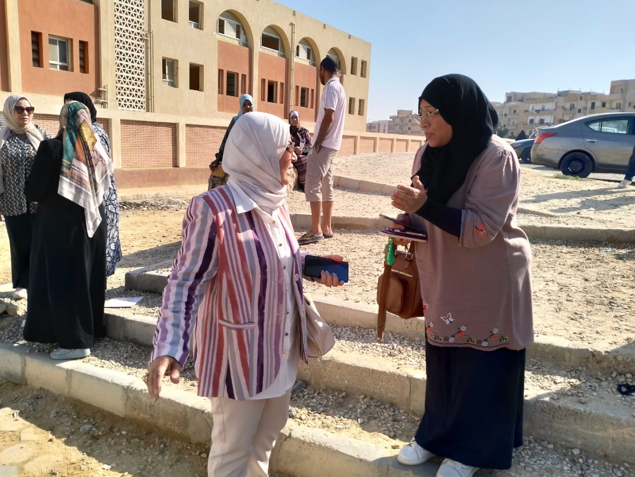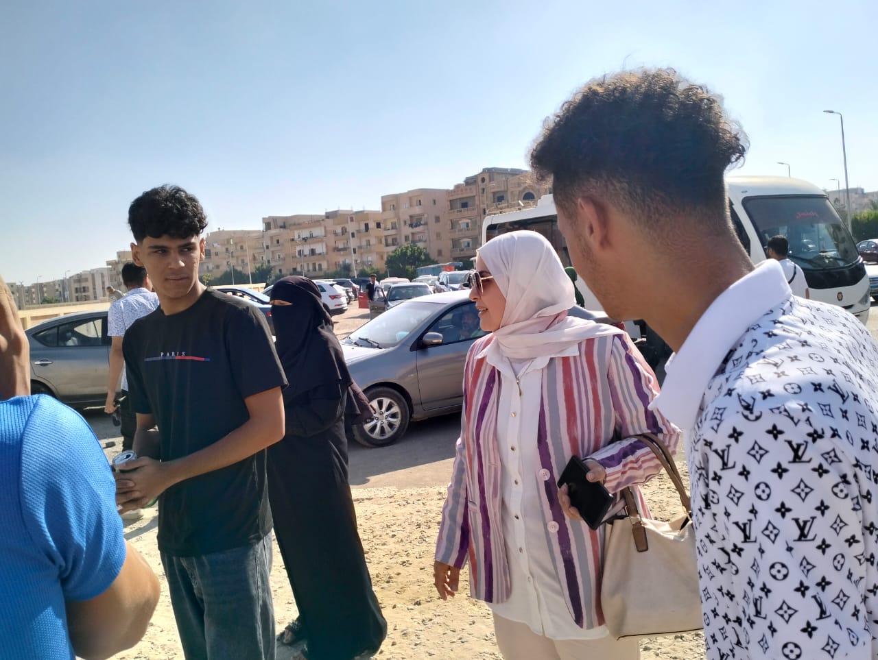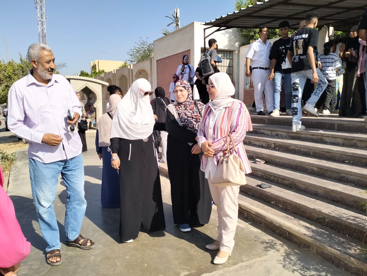 وفي ذات السياق إلتقت مصطفى، بعدد كبير من أولياء أمور الطلبة المنتظرين لأبنائهم خارج اللجان، وطمئنتهم، كما التقت برجال الشرطة المكلفين بتأمين اللجان، وقدمت لهم الشكر على الجهد المبذول لتأمين اللجان.