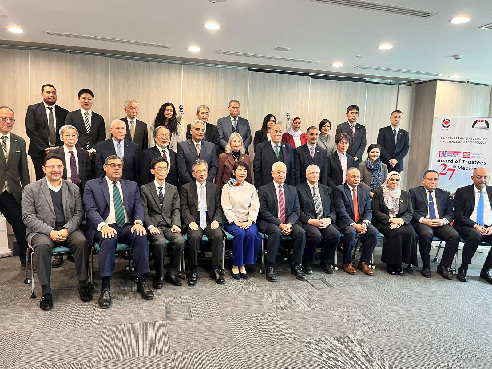 اجتمع مجلس أمناء الجامعة المصرية اليابانية للعلوم والتكنولوجيا برئاسة الدكتور هانى هلال وزير التعليم العالى والبحث العلمى الأسبق والسيدة ايموتو ساتشيكو نائب رئيس هيئة التعاون الدولي الياباني (جايكا) الاول في دورته السابعة والعشرين بمقر الجامعة بالقرية الذكية بحضور الدكتور عمرو عدلى رئيس الجامعة والسفير اليابانى أوكا هيروشي، والدكتور شوجى هاشيموتو نائب رئيس الجامعة لشئون العلاقات الإقليمية والدولية، والدكتور سامح ندا نائب رئيس الجامعة للتعليم والشئون الأكاديمية، والدكتور فوكودا، نائب رئيس الجامعة للبحث العلمي، وأعضاء مجلس الأمناء من الجانبين المصري والياباني وعمداء الكليات والمراكز بالجامعة.